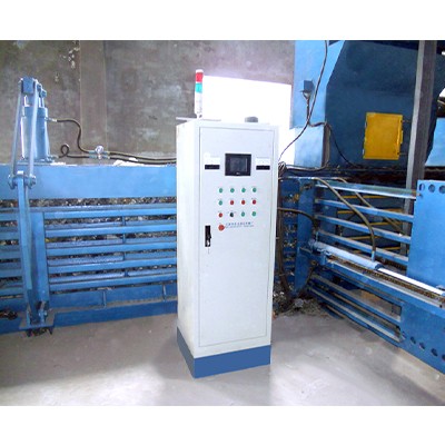 4、機(jī)械下料口采用自動(dòng)壓料裝置,將打包物料壓縮到打包室中。